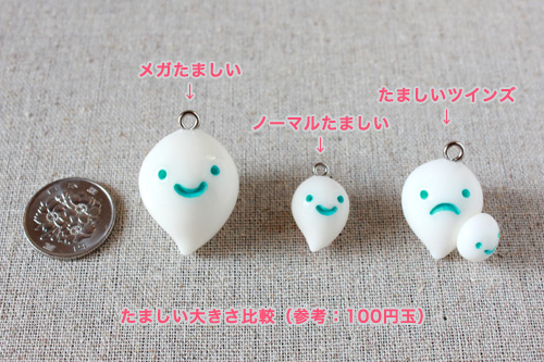 一番シンプルなノーマルたましいがだいたい100円玉ぐらいの大きさ。