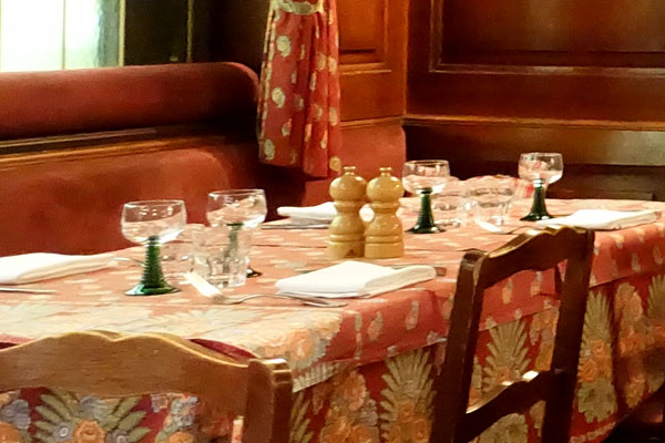 ちょっと薄暗い店内は、アルザスらしい赤のファブリックやアルザス陶器が飾られて